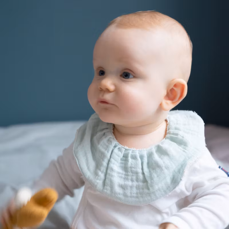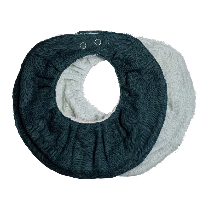 Myk og søt Ruffle siklesmekke 2pk fra Fabelab i fargen Sprout. Laget i 100 % økologisk bomull med frotté på baksiden – perfekt for små siklebabyer og stilige må