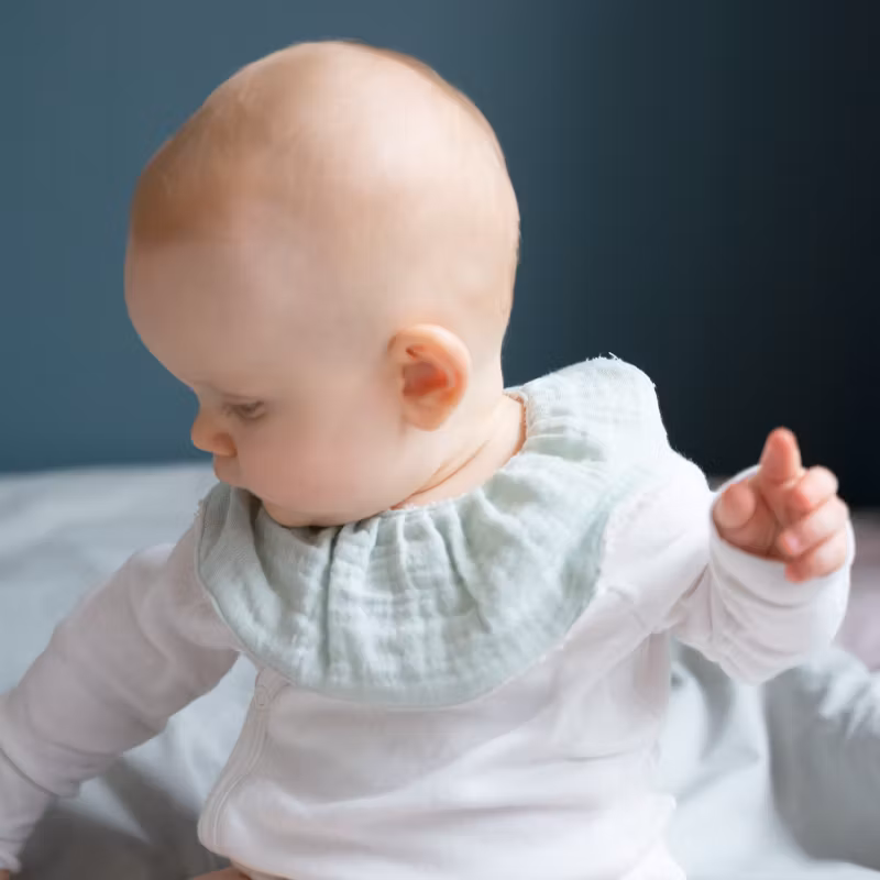 Myk frotté på baksiden sørger for at smekken sitter godt og har god sugeevne – perfekt for små siklemonstre.