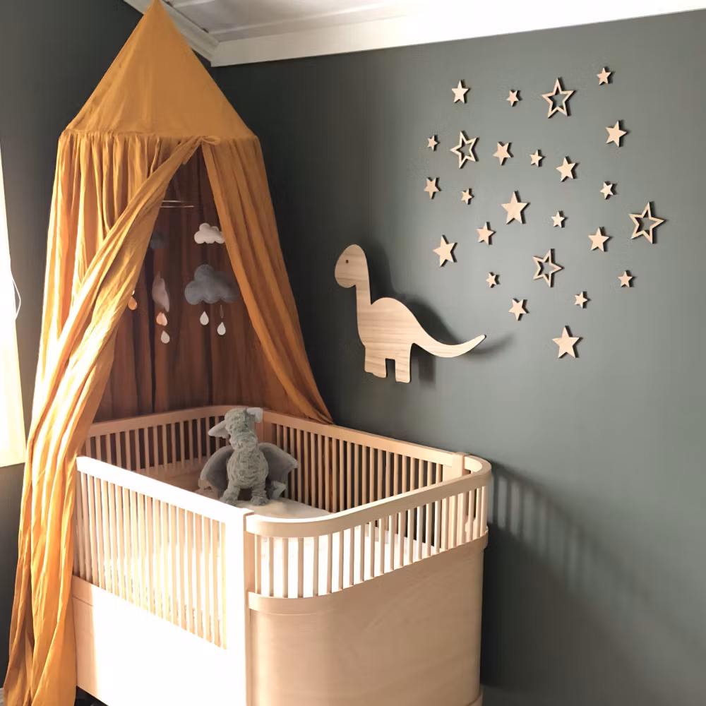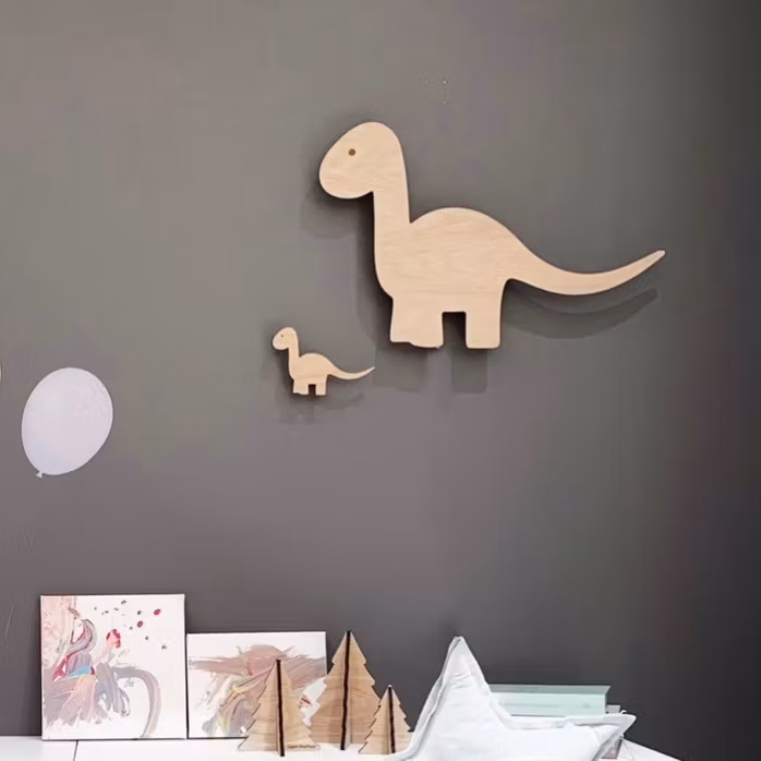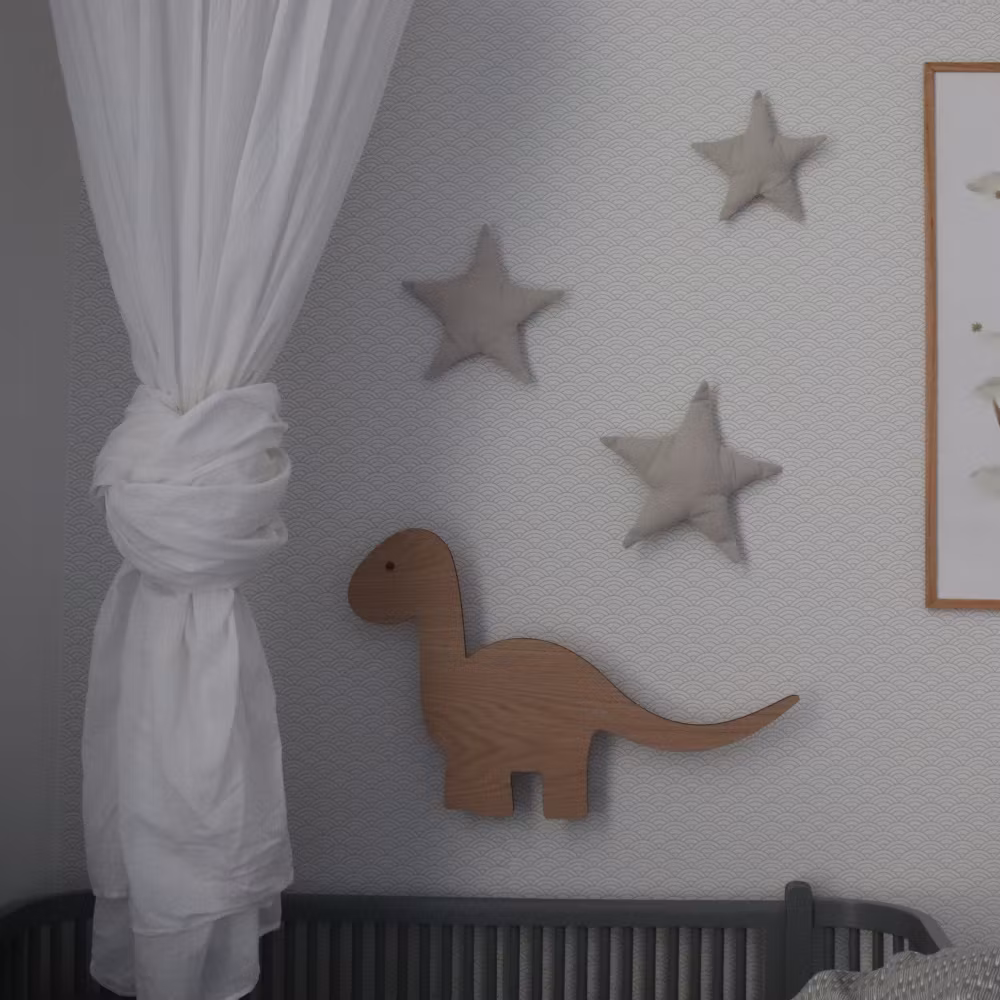 Gi barnerommet et koselig og stemningsfullt lys med Dino Lampe i eik fra Maseliving. Denne sjarmerende lampen skaper den perfekte atmosfæren, enten det er til lesestunden, som nattlampe, eller ved stellebordet. Lampen har en praktisk avskjerming som demper belysningen, noe som gjør den ideell som nattlys for små barn. Med to lysnivåer og automatisk avstenging etter én time, er denne lampen både praktisk og trygg.