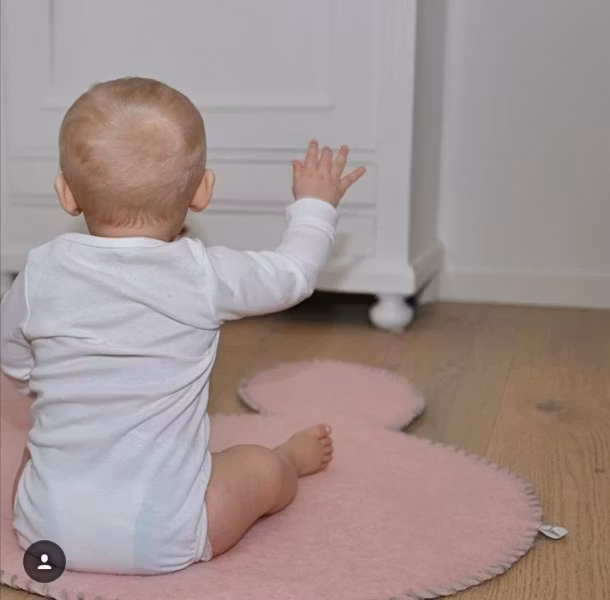 Koselig kaninteppe fra Johanibali, håndlaget i 100% ull med slisikkert underlag. Perfekt til barnerommet. Mål: 95x75 cm. Legg til varme og stil i rommet ditt!