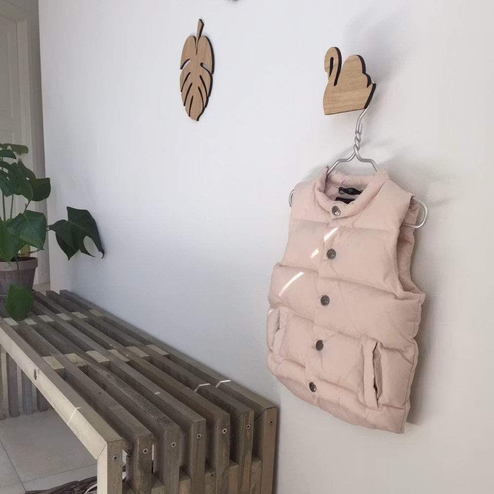 Legg til en leken touch med Svane-knagg i eik fra Maseliving. Perfekt til barnerom, gangen eller oppholdsrommet. Enkel montering og praktisk i bruk!