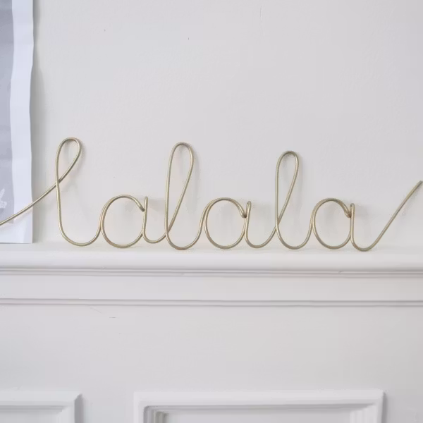 Legg til en kongelig touch på barnerommet med den elegante Lalala veggdekoren i gull fra Adore Us Babies. Håndlaget i Sør-Afrika av høykvalitets stål, denne dekorasjonen kombinerer unikt design og varig kvalitet.