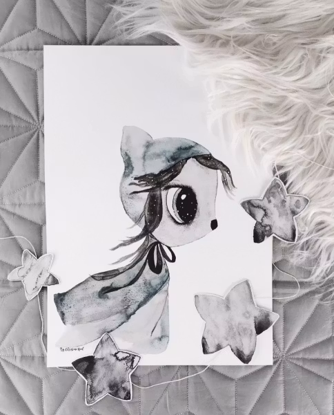 Med sitt enkle, men elegante uttrykk, er Misty ideell som en del av barnets rominnredning. Den passer perfekt i standard A3-rammer og er en flott gave til spesielle anledninger.