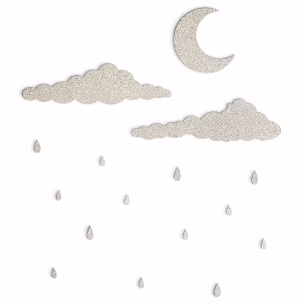 Skap en magisk og drømmende stemning på barnerommet med Rainy Days Veggdekor fra That’s Mine. Dette dekorative settet inkluderer skyer, måne og regndråper, perfekt for å gi rommet et unikt preg.