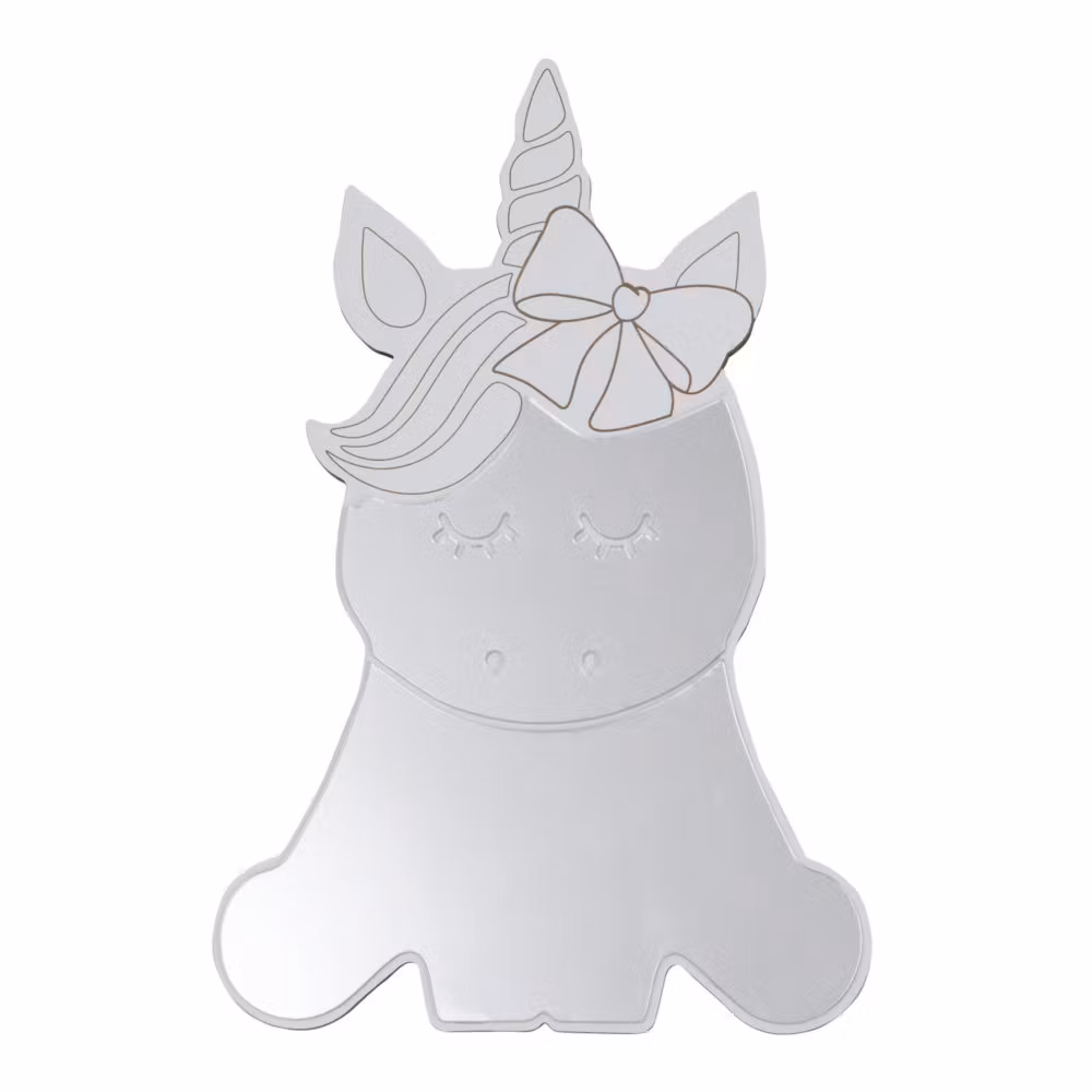 Speilet er laget av akryl, uten skarpe hjørner, og er helt trygt for små hender. Den unike enhjørning-designen gir et morsomt preg til ethvert rom, og siden det er lett å flytte, kan du enkelt justere høyden etter barnets behov.