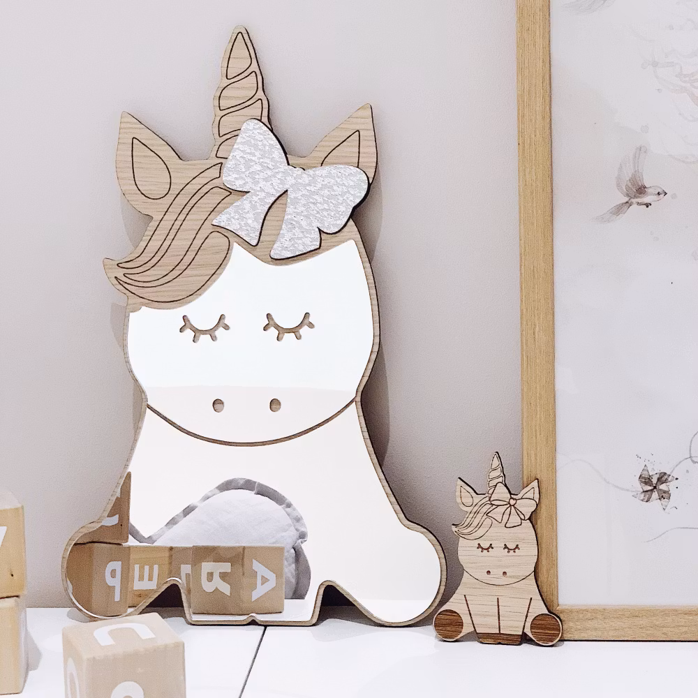 Legg til et lekent og inspirerende element på barnerommet med Speil Enhjørning i Hvit fra Maseliving. Dette håndlagde speilet er ikke bare et dekorativt tilskudd, men også et praktisk hjelpemiddel for små barn som utforsker og lærer om seg selv. Perfekt for stellebordet, da det lar ditt barn oppdage sitt eget speilbilde samtidig som de trener ryggen og nakken.