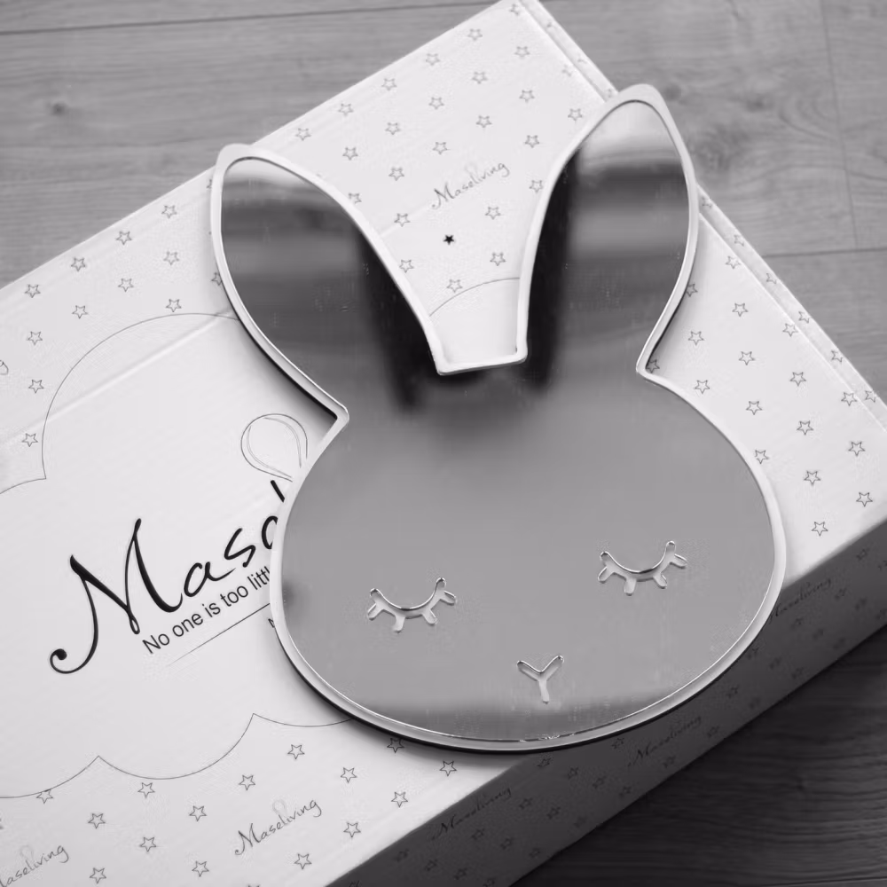 Legg til et lekent preg på barnerommet med Speil Kanin fra Maseliving. Håndlaget akrylspeil i hvittre, perfekt for småbarn ved stellebordet. Unik og trygg desig