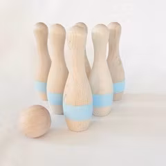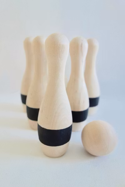 Oppdag Behind The Trees bowlingsett i tre! 5 kjegler og 1 ball, håndlaget med giftfri maling. Lek som styrker motorikk og gir glede. Kjøp nå!
